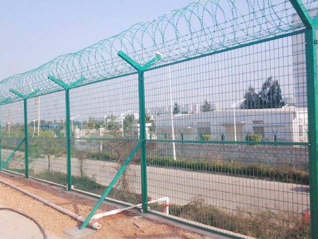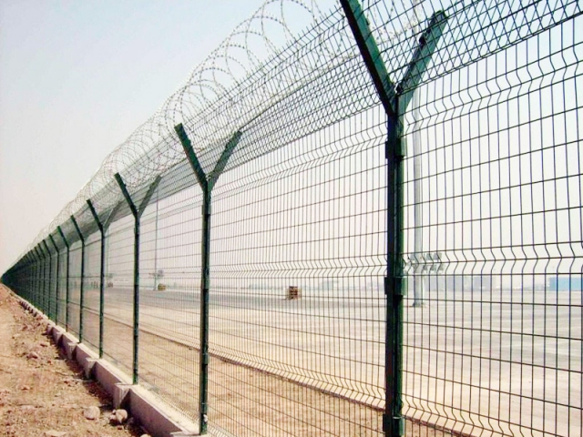 機(jī)場圍界就是應(yīng)用于機(jī)場跑道兩側(cè)的隔離網(wǎng),作用是防止行人誤入跑道,影響飛機(jī)正常運(yùn)行的有效措施。這個(gè)機(jī)場圍界也分為機(jī)場內(nèi)隔離與機(jī)場外隔離,機(jī)場內(nèi)隔離的要求更高,頂部設(shè)置刀刺網(wǎng),外隔離就比較簡單一些,主要還是防止閑雜或者違法人員進(jìn)入飛行禁區(qū),盡管這雙重保護(hù)之下,還是會有人進(jìn)行每天巡邏,以防止個(gè)別情況發(fā)生。機(jī)場圍界廣泛應(yīng)用于各大飛機(jī)場的邊界,用作邊界圍欄防護(hù)網(wǎng),還可以用于港口圍界防護(hù)、碼頭鋼絲防護(hù)網(wǎng)、飛機(jī)場防護(hù)護(hù)欄網(wǎng)、Y型安全防御護(hù)網(wǎng),也可以用于公園、動物園、賓館酒店、市政道路等領(lǐng)地周邊的安全防護(hù)圍網(wǎng)。